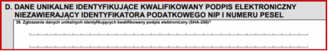 - "zgłoszenie danych unikalnych identyfikujących kwalifikowany podpis elektroniczny podatnika" - części C formularza nie należy uzupełniać.