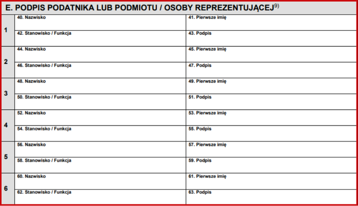 W części E złóż swój podpis jako podatnik, podmiot lub osoba reprezentująca, która nadaje lub odbiera uprawnienie w KSeF