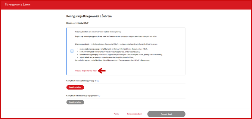 Na koniec wybierz opcję Przejdź dalej. Gotowe. System Księgowość z Żubrem jest już połączony z KSeF.