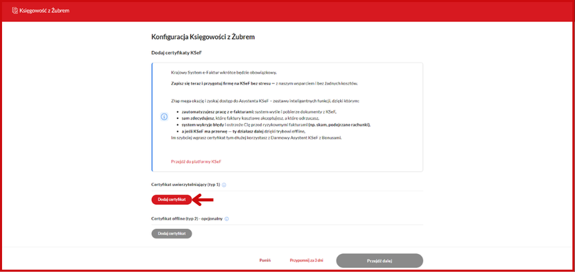 Na koniec wybierz opcję Przejdź dalej. Gotowe. System Księgowość z Żubrem jest już połączony z KSeF.