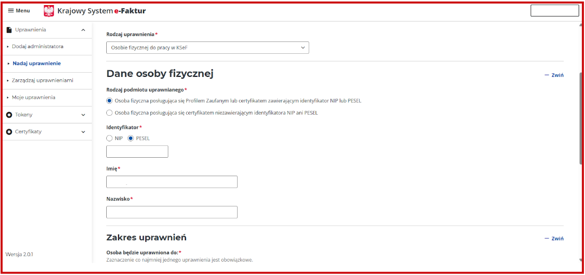 - Osobie fizycznej do pracy w KSeF
