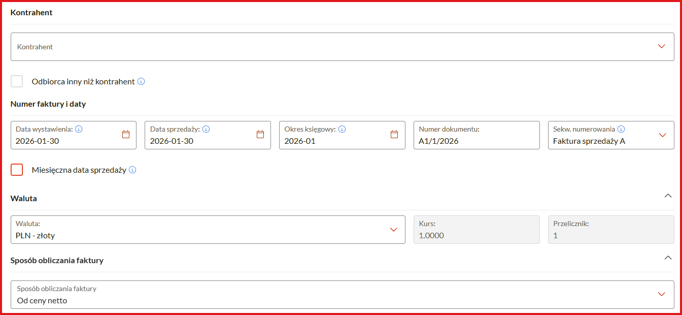 - wybrać walutę, w której faktura ma zostać wystawiona,