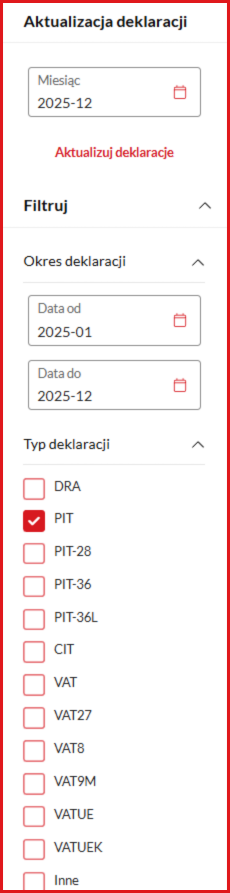- Okres deklaracji: od 2025-01 do 2025-12;